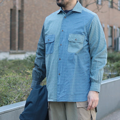 GRANDPA SHIRT CRAZY PATTERN DOBBY / BLUE