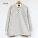 ■素材は、コットンの厚手のスウェット生地を使用しています。裏は起毛しており、ふっくらとした素材感で着心地抜群です。ヘンリーネックシャツとしては肉厚な生地で、スウェットシャツのような感覚で着用いただけます。