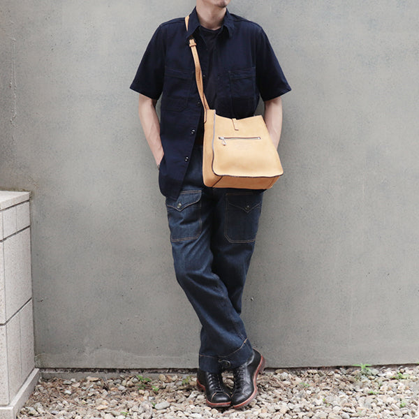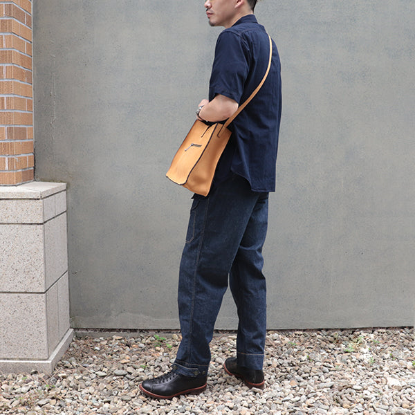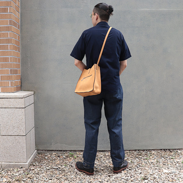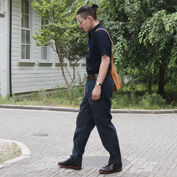 ■深みのあるインディゴのロープ染色で色味を追求したタテにシャープなムラのある色落ちをしていくライトオンスのデニムを使用しています。