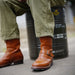革靴の伝統的な製法の一つ、グッドイヤーウェルト製法で複雑な縫い合わせによる耐久性を誇ります。