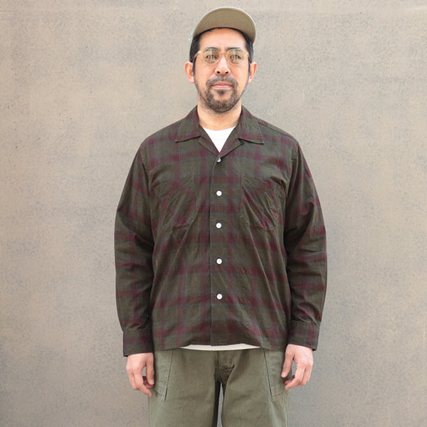■イエローとレッドのチェック柄生地に墨汁(ぼくじゅう)コーティングを施しているため、実際はオリーブグリーンのような独特な色合いに仕上がっています。洗濯と着用を重ねることでチェック柄が徐々に浮かび上がり、経年変化を楽しめます。