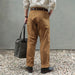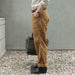 ■素材は、シャトル織機で織られたセルビッジ付きのコットンダック生地を使用しています。太ももから膝下まで二重の生地が充てられていますが厚すぎない軽い生地感です。ヴィンテージのヘビーデューティーなワークパンツを意識したイエローブラウンで作りました。