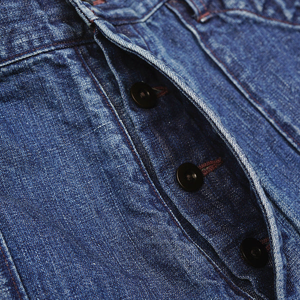 ■フロントはボタンフライ仕様です。また、ウエストにはサスペンダーボタンが付いていますので、サスペンダーを使ったコーディネートもおすすめです。