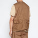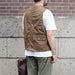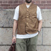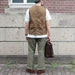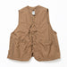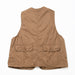 ヴィンテージのハンティングベストをリプロダクションしたアイテムです。大きい身幅と短かめの着丈が特徴で、通常のベストとしてはもちろん、カバーオールなどの軽いジャケットの上から羽織るアウターベストとしても着用できる一着です。