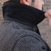 この特殊な生地は、ニットを編むラッセル織機を使用して、コットンとウールで高密度に二重織(表と裏で違う)をしたものです。表生地はニット感のあるコットン・ウールで、裏生地はウール起毛でパイル状になっている二重構造です。