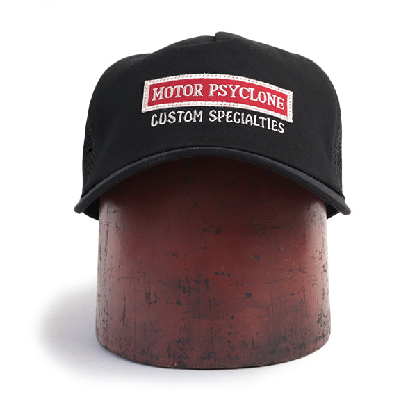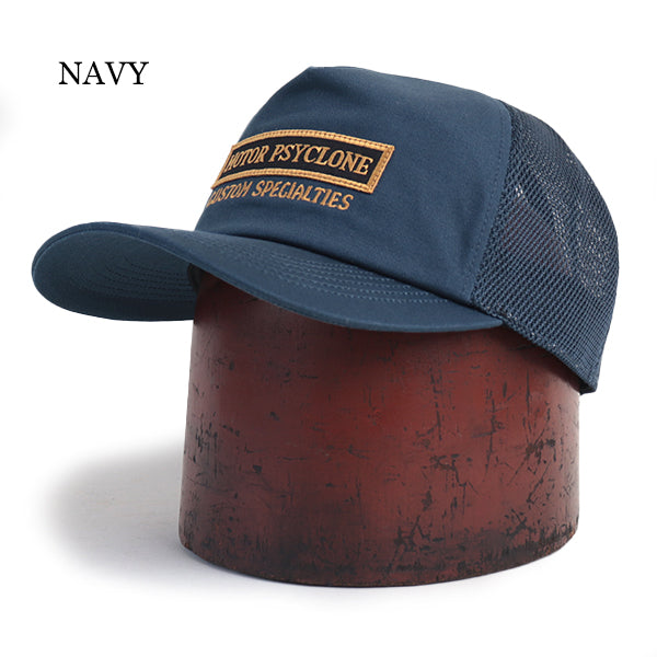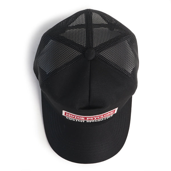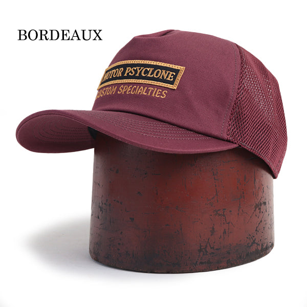■初となるメッシュタイプのトラッカーキャップです。フロントは、モーター・サイクロンのパッチとカスタム・スペシャリティーズの刺繍デザインがアクセントとなります。