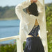 背面をボタンで開閉して着用するデザインで、クラシックな要素を持ちながらも日常のスタイリングに自然と馴染む一着です。