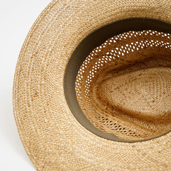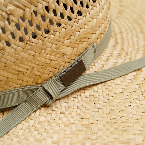 ■素材は、ローガ草と呼ばれる天然の草木素材を使用しています。麦わら帽子の素材として主に使用されており、軽量で通気性、柔軟性に優れているのが特徴です。