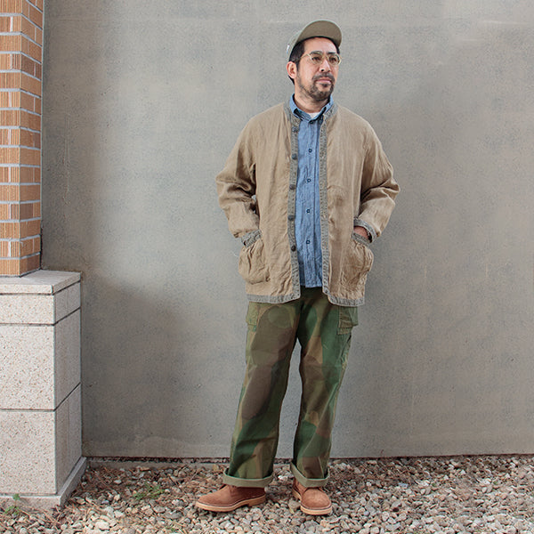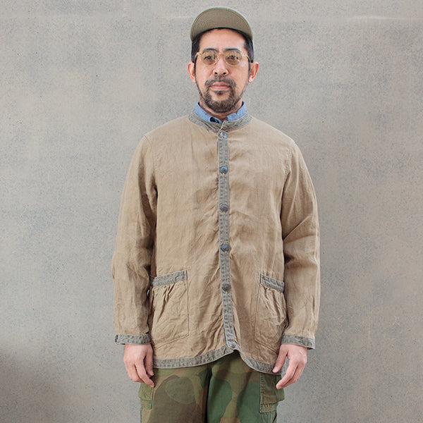 ヴィンテージのフレンチワークジャケットをベースにしたデザインに、リネンピンオックス素材を使用したモデルです。