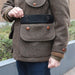 腰ポケットのフラッブ型のポケットは浅型で3分割ポケットが付き、その下に大型ポケットを配置しています。