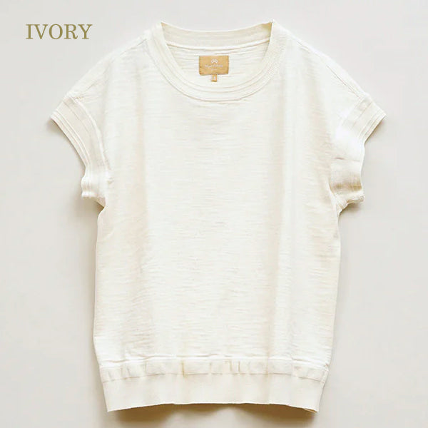 ナイジェル・ケーボン ウーマン2025年ハイサマーコレクションより、親子天竺と呼ばれるカットソー生地を使用した、フレンチスリーブTシャツがリリース。
