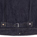 ■生地は敢えて、色落ちしづらい濃色のインディゴ染料をしています。オンスの引き下げの制約を拒否し、従来のタテ糸の番手を太くすることで結果的に僅かのオンスを引き上げています。