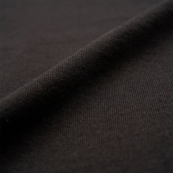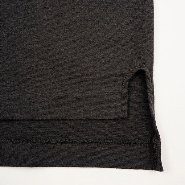 オープンエンドとは、空気の遠心力を使って糸を紡ぐ紡績方法のことで、繊維の間に空気が含まれることにより、肌に触れた時にまとわりつかず、吸水性も持ち合わせています。 また、両サイドは縫製のない丸胴ボディを使用しているため、ストレスフリーで着用できます。