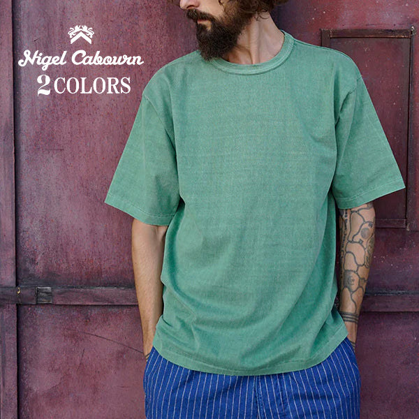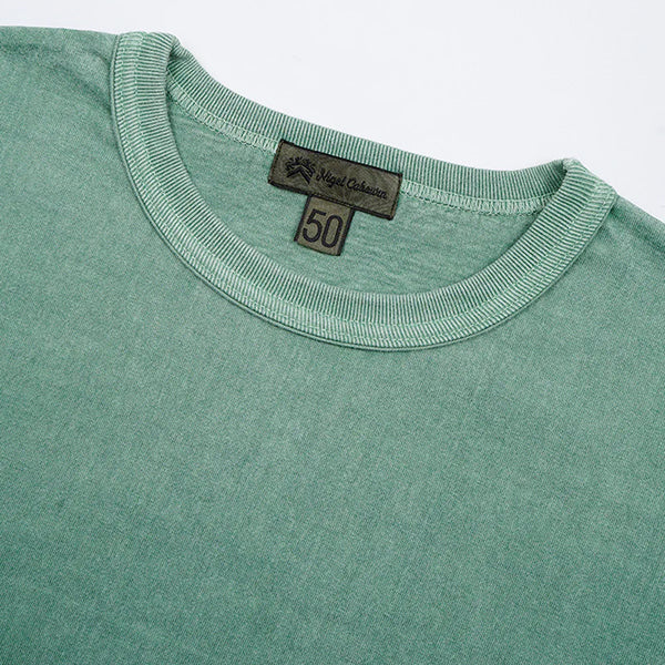 オープンエンドヤーン(空紡糸)を原料とした丸胴の編地、ナイジェル・ケーボンの定番Tシャツではおなじみのボディから編地の密度を変更し、7.8ozに仕上げました。これまでナイジェル・ケーボンのTシャツは5.6ozと9.5ozがありますので、ちょうどその中間くらいの厚さの生地です。