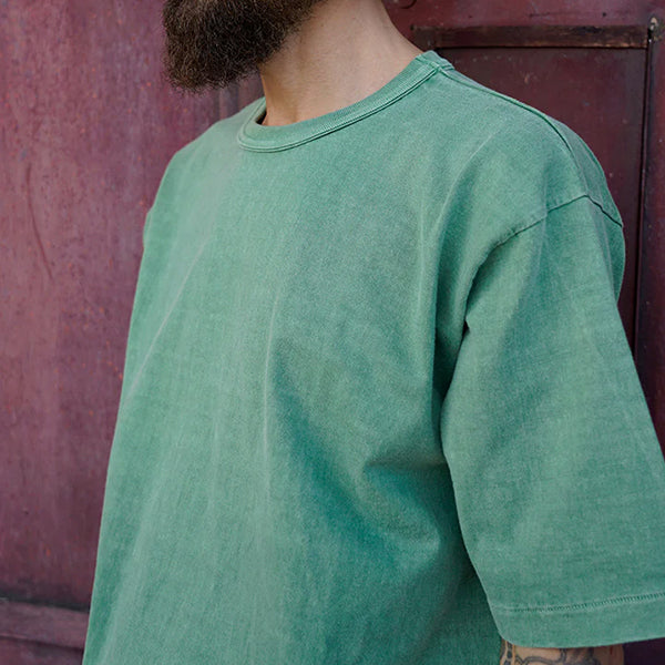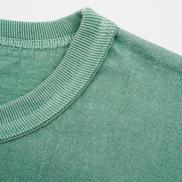 2025年ハイサマーコレクションより、7.8ozの生地を使用したダブルバインダーネックのTシャツがリリース。本製品は、更に顔料染めを施したモデルで独特の色ムラ感、味わい深いカラーリングを楽しめます。