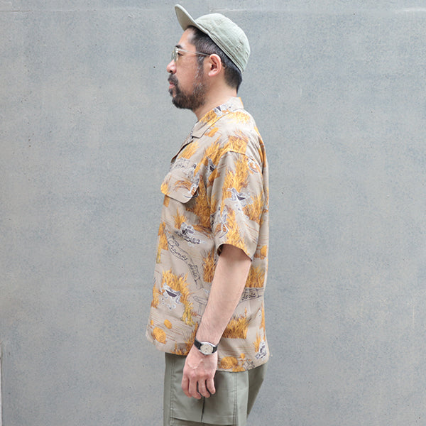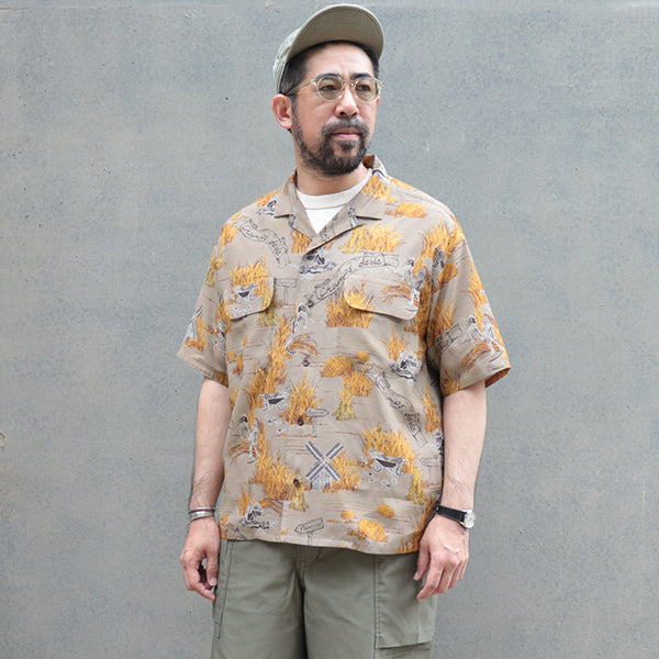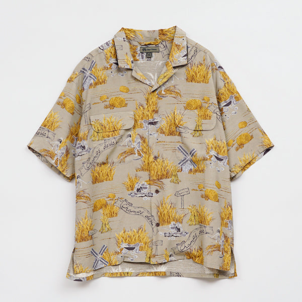 2025年ハイサマーコレクションより、小麦畑での収穫風景が描かれた総柄のアロハシャツがリリース。
