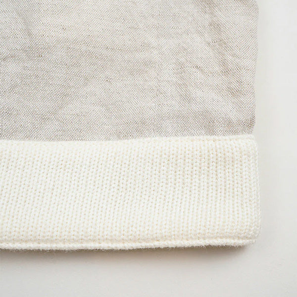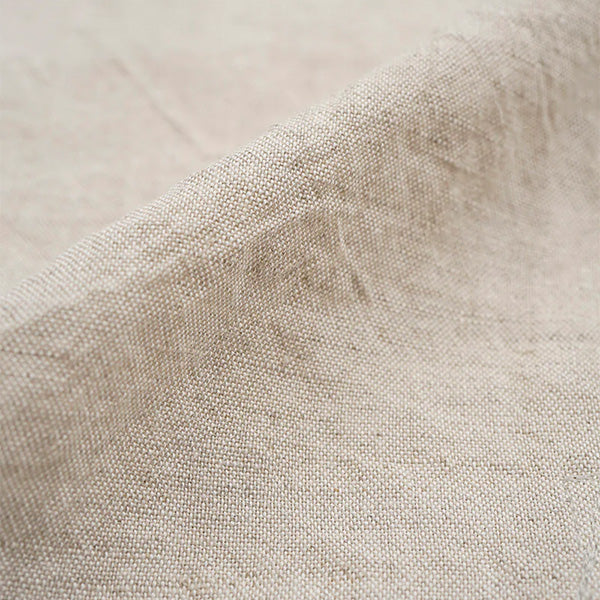 ■素材は、40番手の平織リネンを機械的なテンションをかけずに丁寧に織り上げた生地を使用しています。リネン素材本来の風合いを活かした生地で、職人が少量ずつ染色し天日で乾燥させることで、生地に自然なシワ感と風合いをプラスしています。