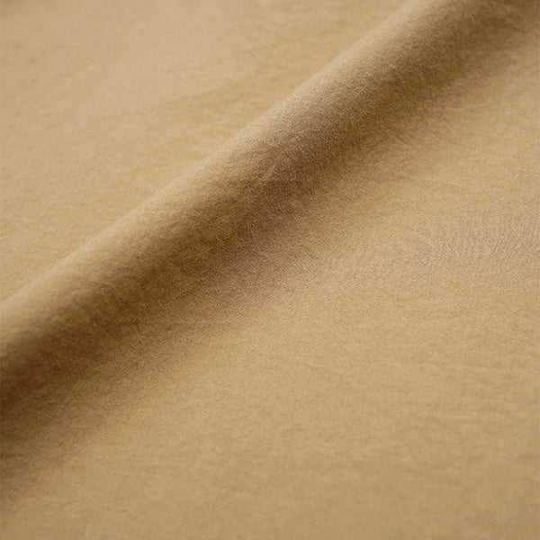 かつての印字機械であるタイプライターで文字が打てるほどに密度のある織物であることから、こう呼ばれるようになりました。ハリのある質感を保ちながら、更に揉み込みと樹脂加工を施すことで、ふんわりとしたナチュラルなシワ感を演出。これからの暑い季節にぴったりの生地です。