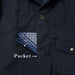 低い位置に配された胸ポケット (二重構造)、ポケット内が二つに仕切られたフラップ付きの腰ポケット、さらに前身頃の真ん中の両サイドにも大きなゲームポケットもあり、ジャケットとしての収納力も高く、バッグいらずのジャケットです。
