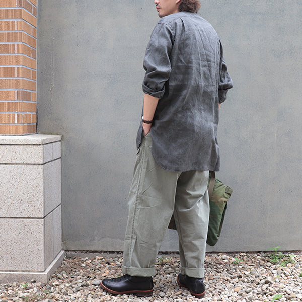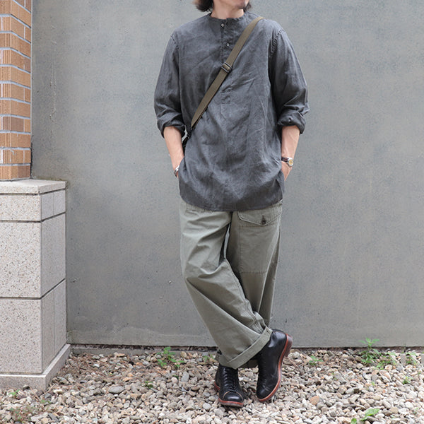 ■後ろの裾が長めの着丈が特徴のヘンリーネックのプルオーバーシャツです。ゆったりとしたサイズ感で、暑い夏でも快適に着用いただけます。
