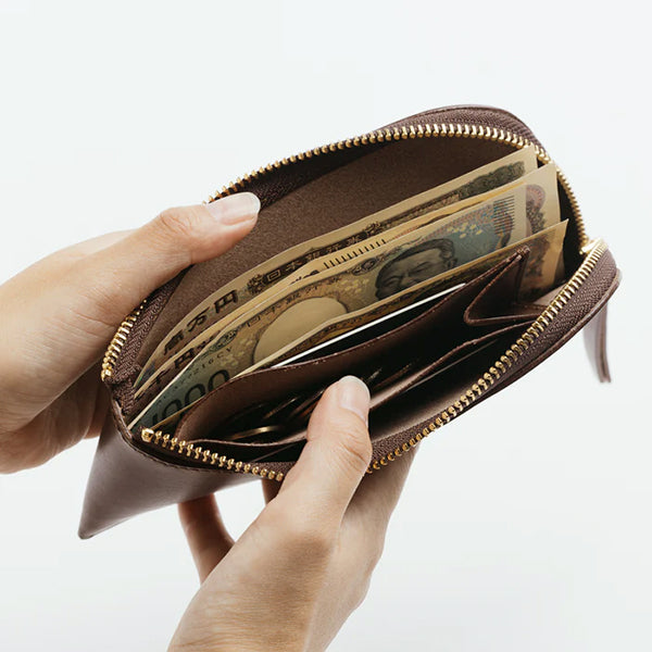 ■コンパクトでスマートなサイズのL字型、ジッパー付き財布です。お札も折らずにすっきりと収納できます。
