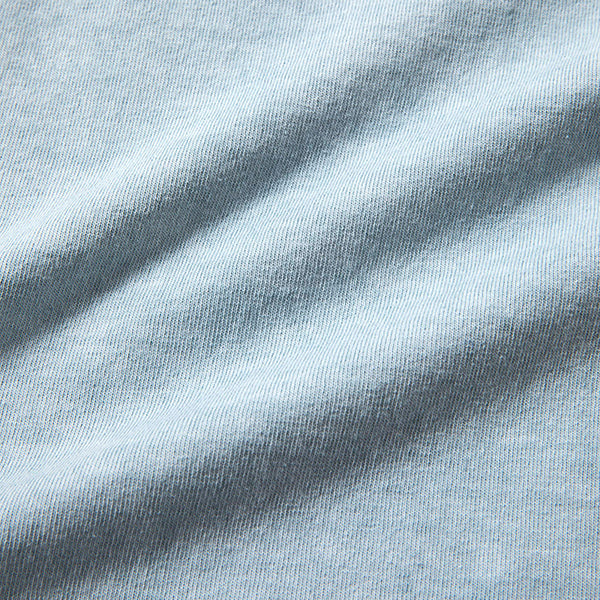 ■素材は、アメリカのミシシッピ川流域の「綿作地帯」を主産地としたUSA コットンを使用しており、長さ13mm〜33mm程度の綿毛を遠心力で糸に整えていく空気紡績によってドライな風合いを生み出します。