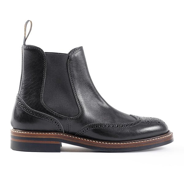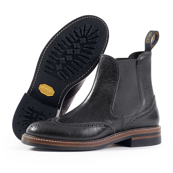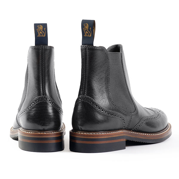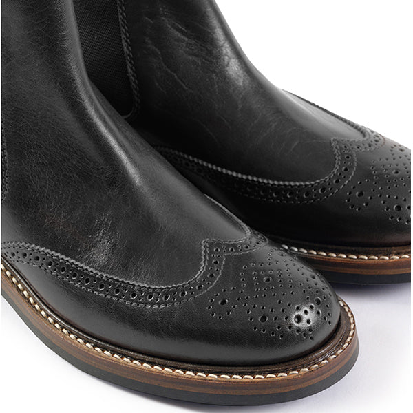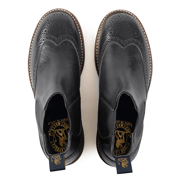 MEDALLION BROGUE CHELSEA BOOTS / SHINKI HIKAKU HORSEBUTT / BLACK
