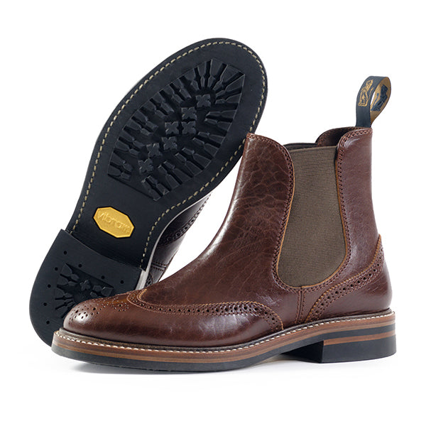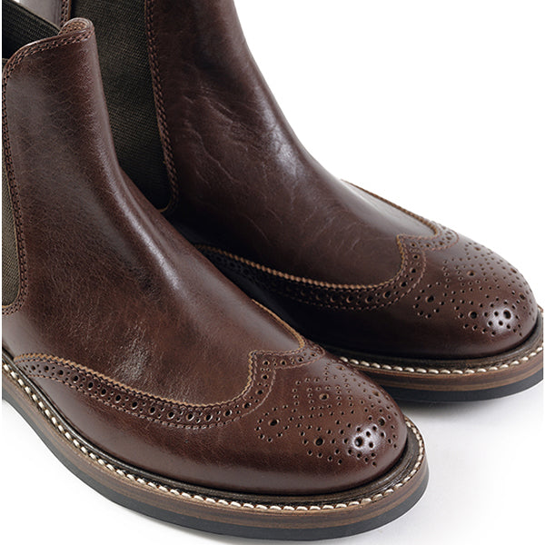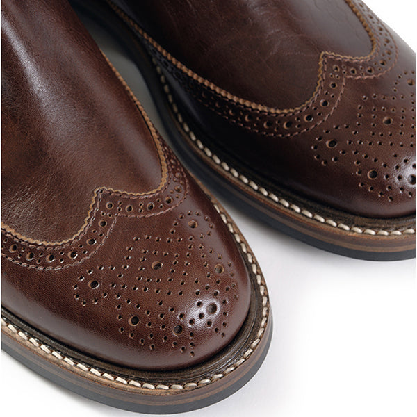 MEDALLION BROGUE CHELSEA BOOTS / SHINKI HIKAKU HORSEBUTT / DARK BROWN