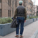 この特殊な生地は、ニットを編むラッセル織機を使用して、コットンとウールで高密度に二重織(表と裏で違う)をしたものです。表生地はニット感のあるコットン・ウールで、裏生地はウール起毛でパイル状になっている二重構造です。