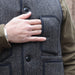 ブラック、チャコール、ベージュの杢糸を使用して深みのある色を出しています。