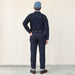 ヨコ糸には撚りの甘い糸、タテ糸には繊維長の短い糸を5種類ほどブレンドし、独特のネップ感を出し、青みの強いデニム地は色落ちも十分に楽しめます。
