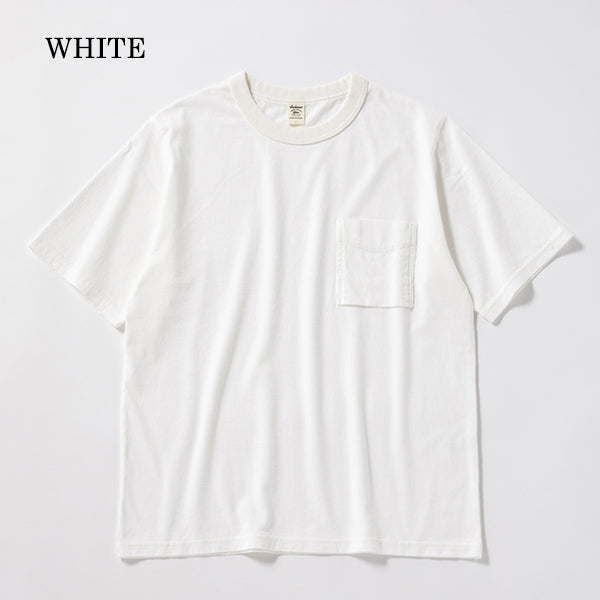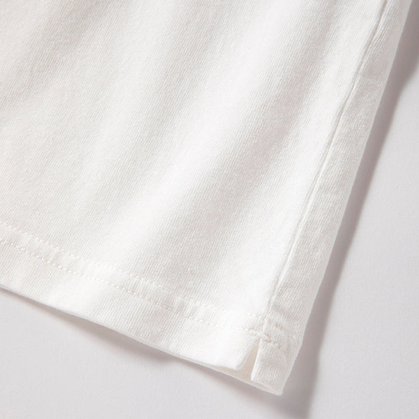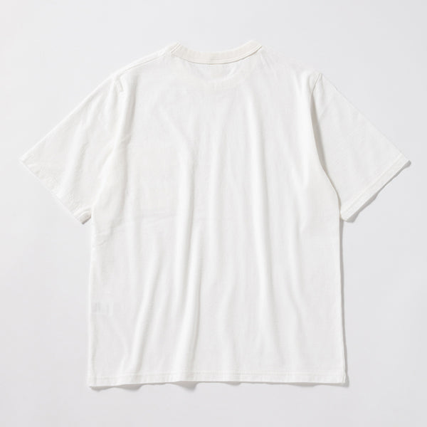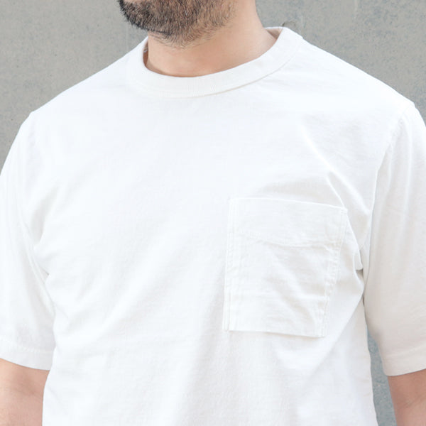 アメリカン・コットンを使用したポケットTシャツです。綿毛を遠心力で糸に整えていく空気紡績によって作られた糸から作られた生地は、ドライな素材感で、汗をかいても肌にまとわりつきにくいことが特徴です。