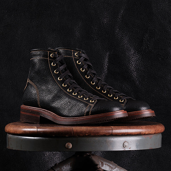 この革は、熊が自然死した時にしか手に入らないため、生産できる数量に限りがあります。エゾ熊の皮は、自然死した熊の皮しか入手できないため、生産量には限りがあり、エキゾチックなブーツをお探しの方のために、十分な数の皮が確保されるまで、数年の間待ちました。