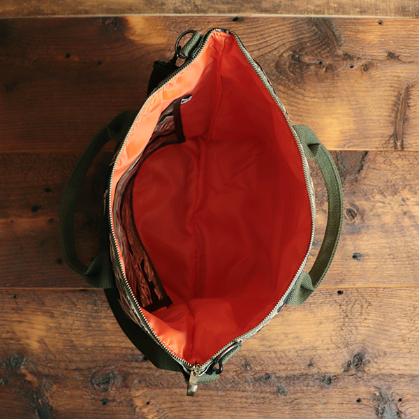 ■ミリタリー由来のバッグですので、大容量で機能性にも優れています。そのルーツのとおりヘルメットが丸ごと入るほどの見た目以上の収納力があります。
