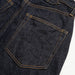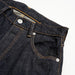 ■定番デニムパンツと同様に、 コインポケットにはリベットに加えて、ブロードアローの門(かんぬき)止め刺繍を施しています。