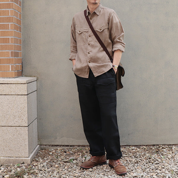 本製品は、1970年代頃のデザインのワークシャツをモチーフにし、ハンティングの要素を取り入れフリーホイーラーズのフィルターを通して生まれたモデルです。